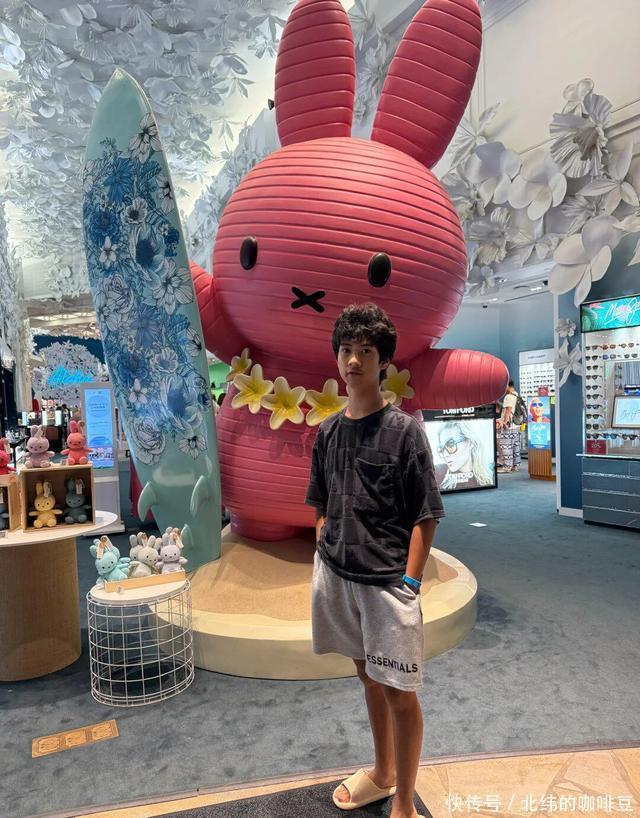 Jagger肯定是不爱拍照的孩子,刘芸晒的这好几张照片都是抓拍的。Jagger平时也是一副不修边幅的样子,他穿大裤衩和拖鞋逛街,双手揣兜里一副叛逆的劲儿。